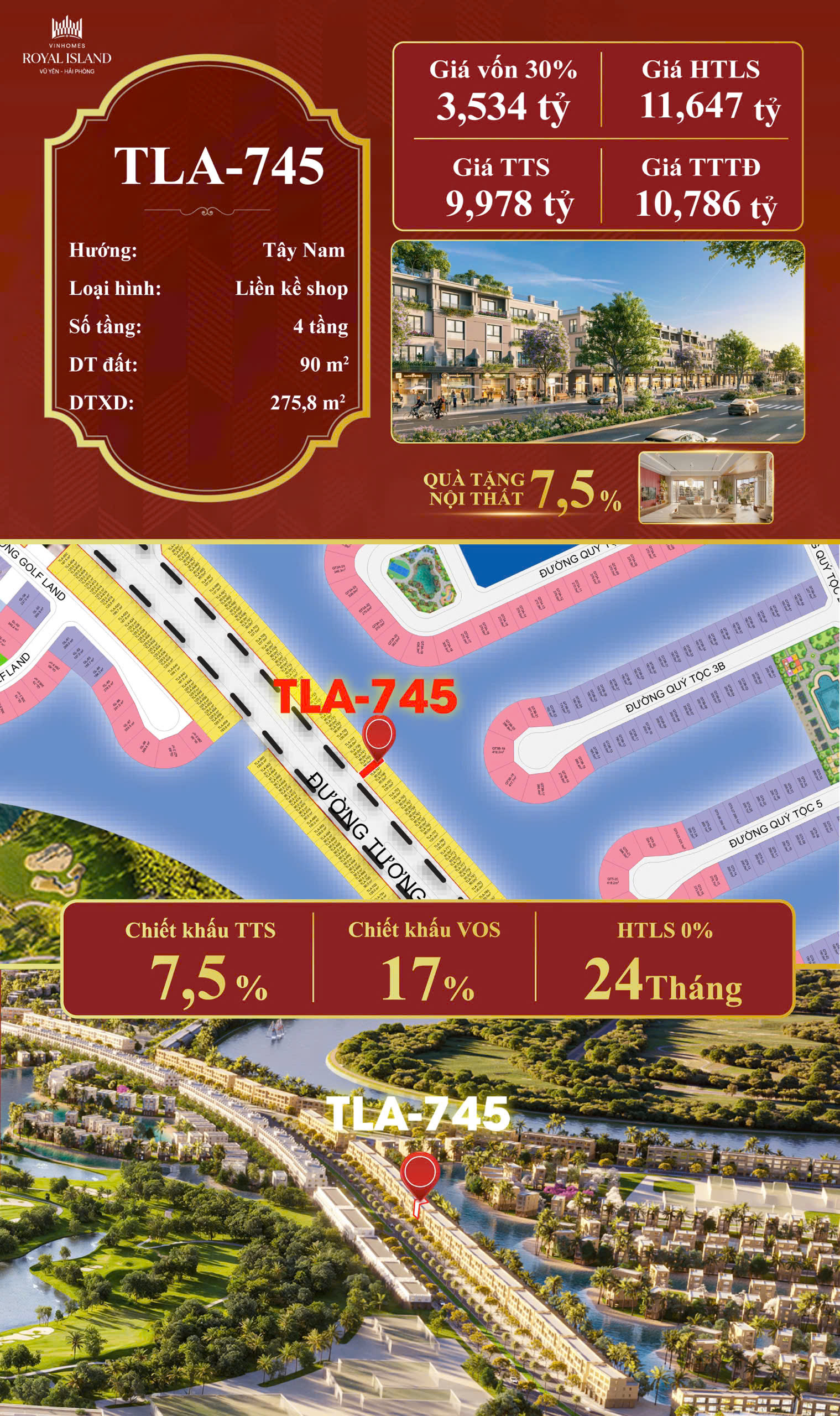 2-Căn Shophouse TLA-745: (Thuộc phân khu quý tộc)